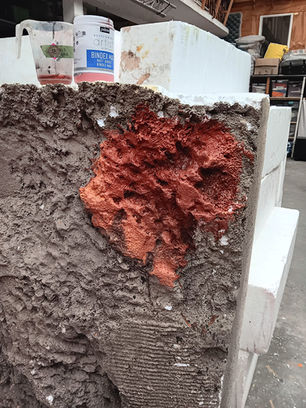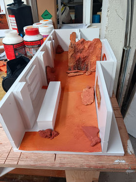 Empty nitrous oxide cans, fake sand, paint,